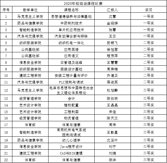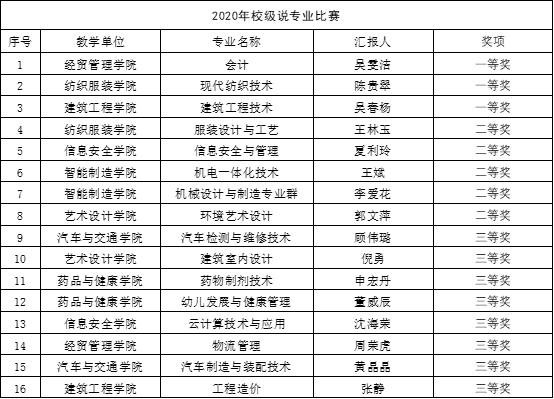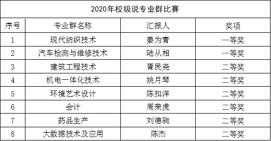 关于2020年校级说专业群、说专业、说课程比赛结果的公示