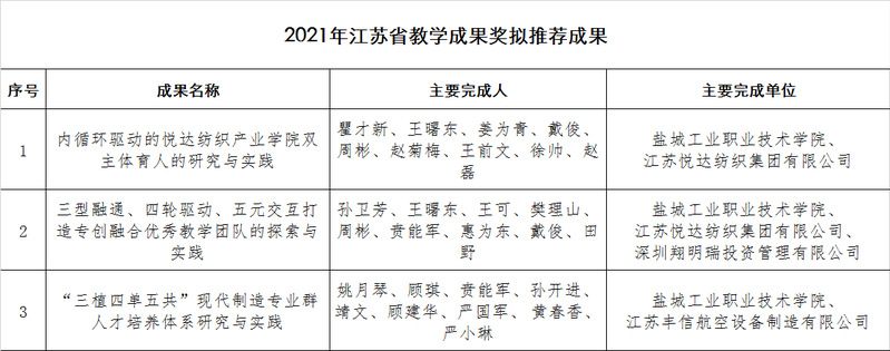 2021年江苏省教学成果奖拟推荐成果公示