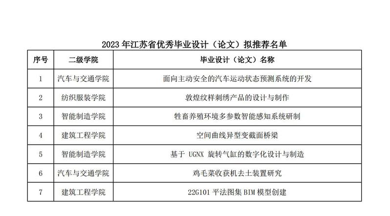 2023年江苏省优秀毕业论文(设计)拟推荐名单公示